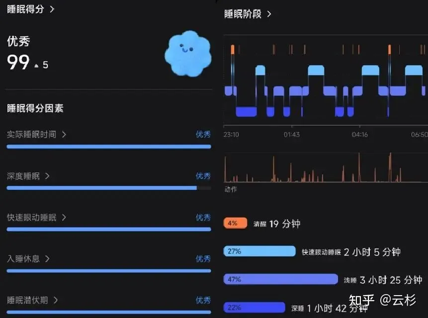 在基线日,我的睡眠得分接近满分(99 分),和主观体感一致: