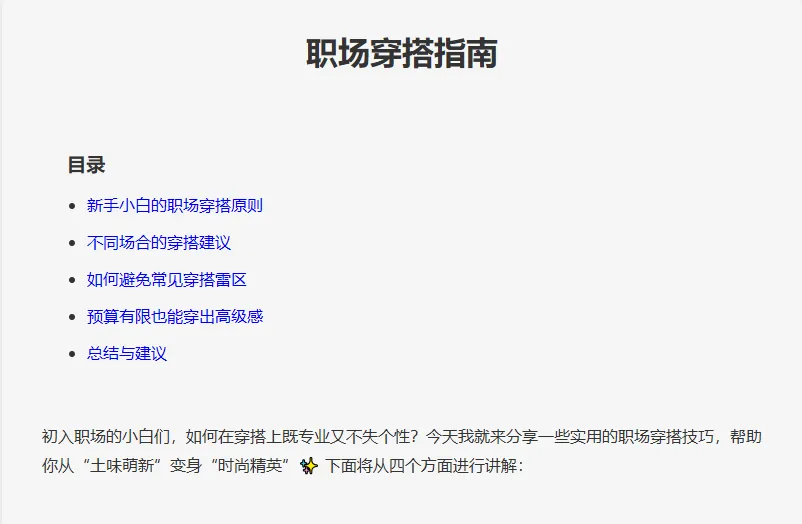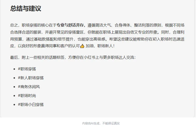 天工超级智能体文档模式:职场穿搭小红书笔记