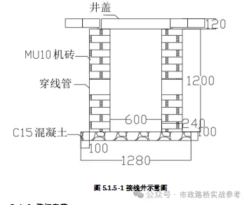 本工程电缆接线井尺寸为600*800*1200(mm)。井壁采用MU10机砖、M7.5水泥砂浆砌筑,内外均使用M7.5水泥砂浆抹面,内厚15mm,外厚20mm。电缆敷设完成后,井内填满沙土。