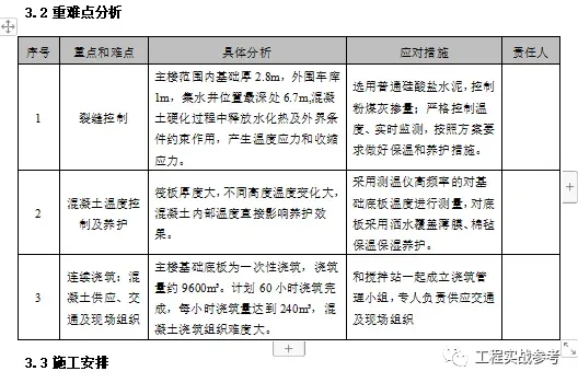2.1.3 基础底板施工重难点分析
