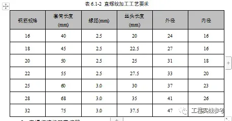 直螺纹加工工艺要求详见下表。