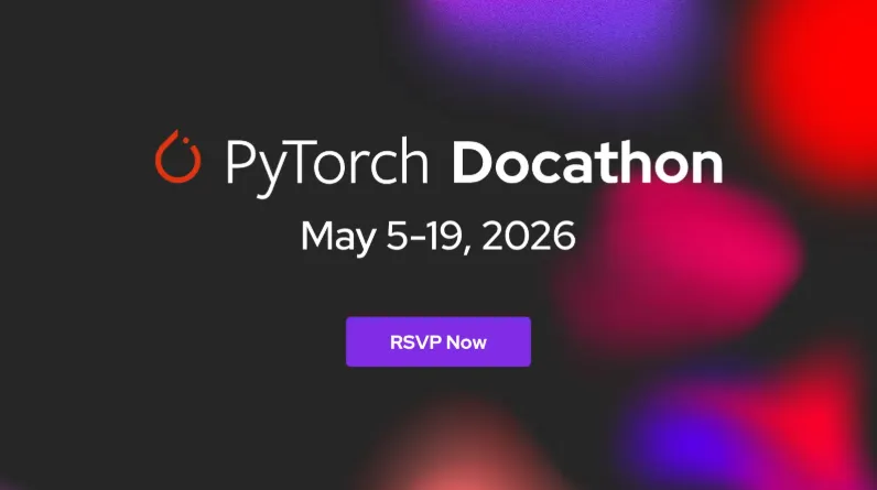 2026 PyTorch 文档马拉松(Docathon)将于 5 月 5 日至 19 日 举行。这是一项以黑客马拉松形式举办的活动,旨在通过社区力量提升 PyTorch 文档质量。文档是任何技术的关键组成部分,完善的文档能够简化新用户的入门流程,帮助他们更有效地使用 PyTorch 的功能,并加速机器学习从研究到生产的过渡。