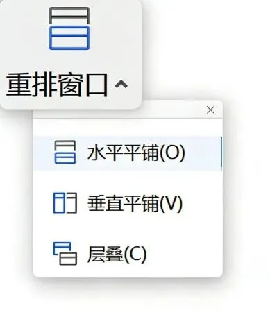 若是Wps,操作步骤一样,只是Wps【视图】里不是【全部重排】,而是【重排窗口】。