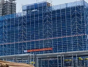 6. 将架体搭设至需要高度,并在架体外侧挂防尘网和密目网。