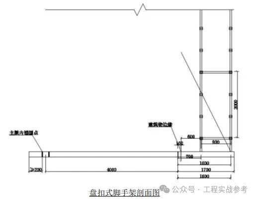 f、根据现场实际情况考虑是否需要设置脚手架连墙件,应提前与相关部门协商处理 。