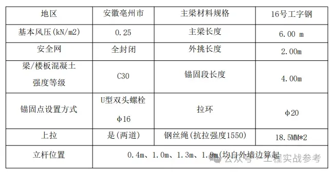 以下参数表中主梁外挑长度,均从持力梁的外边开始至外挑端,内锚长度为持力梁的外边至内尾端,后期计算时,外挑长度为本表长度加0.1米,尾锚长度为本表长度减0.4米。(尾锚环按300mm, 前锚环位置为持力梁的外边向内100mm)