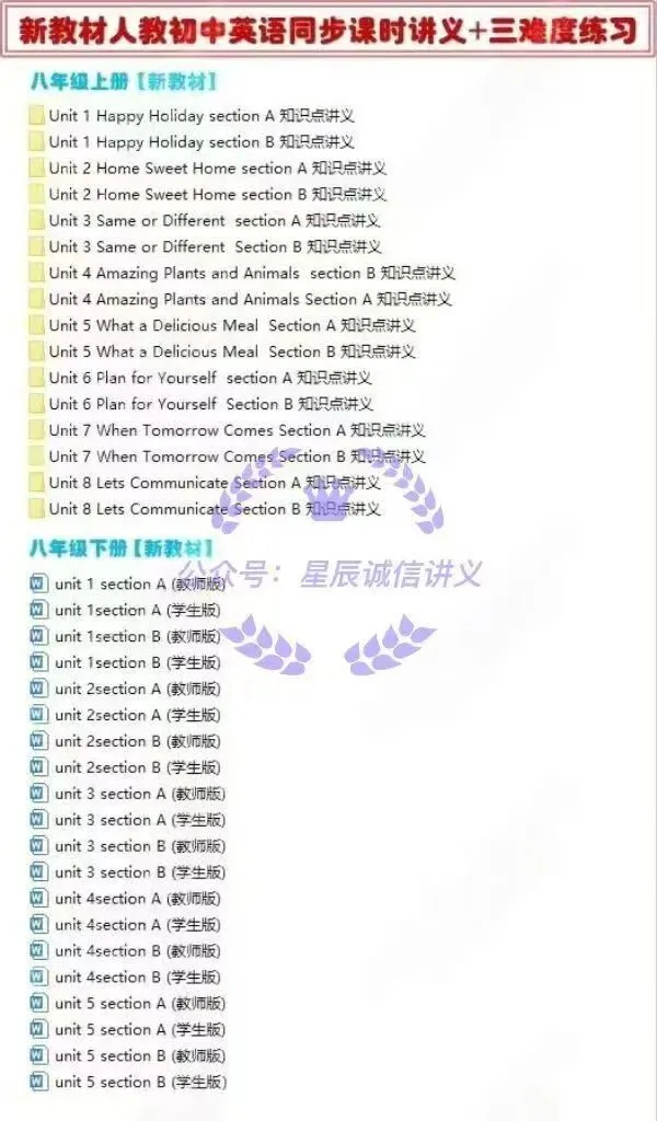 【B-077】✨2026版新教材初中英语同步课时word讲义+三难度加餐练word,新教材人教版❗7-9上下册全套,全套编可辑,无印水可直接使用,讲教义师版、学版生齐全❗。包含全套sectionA、sectionB。78上下皆为教新材。并且赠新送教材单词讲课解件与词单音频。