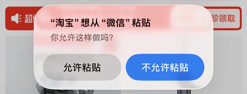 那么千问APP为何要这样设计呢?有一些APP的业务特性,是需要读取剪贴板的,它照抄模仿了。比如淘宝APP,当用户复制了购物链接时,打开淘宝,APP会自动询问是否允许粘贴,允许的话,淘宝APP就自动打开了商品链接——但不需要用户再在搜索框进行粘贴操作,也就是说,淘宝APP是把多步骤的操作,换成了单步骤简单操作,而千问APP,则是把简单问题复杂化了。