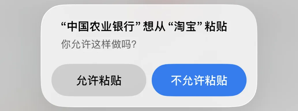 银行APP也普遍默认读取手机剪贴板,用户转账汇款时,从别处复制卡号,再打开银行APP,可选择“允许粘贴”,APP就自动录入卡号,并检索出收款人信息,减少了复制粘贴或手动输入的麻烦。