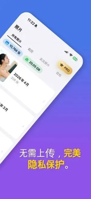 一款智能照片整理应用,可自动识别图库内重复、相似照片,按月归类整理截图,单独管理高占用的实况照片;无需复杂设置,仅靠滑动操作就能批量删除冗余内容,还可直观查看已释放的存储空间,帮助用户快速精简杂乱图库、释放设备内存,操作简单易上手。