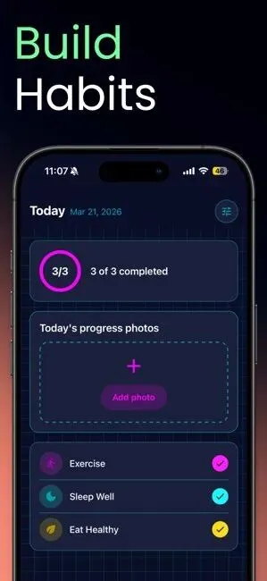 一款主打隐私的个人习惯追踪与进度记录工具。支持日常习惯打卡、上传进度照,提供滑块、并列等多模式前后对比,配套照片对齐工具,还有热图、连续打卡记录、周期趋势等数据展示,支持主题自定义。