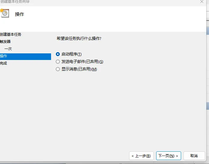 操作选 “启动程序”;