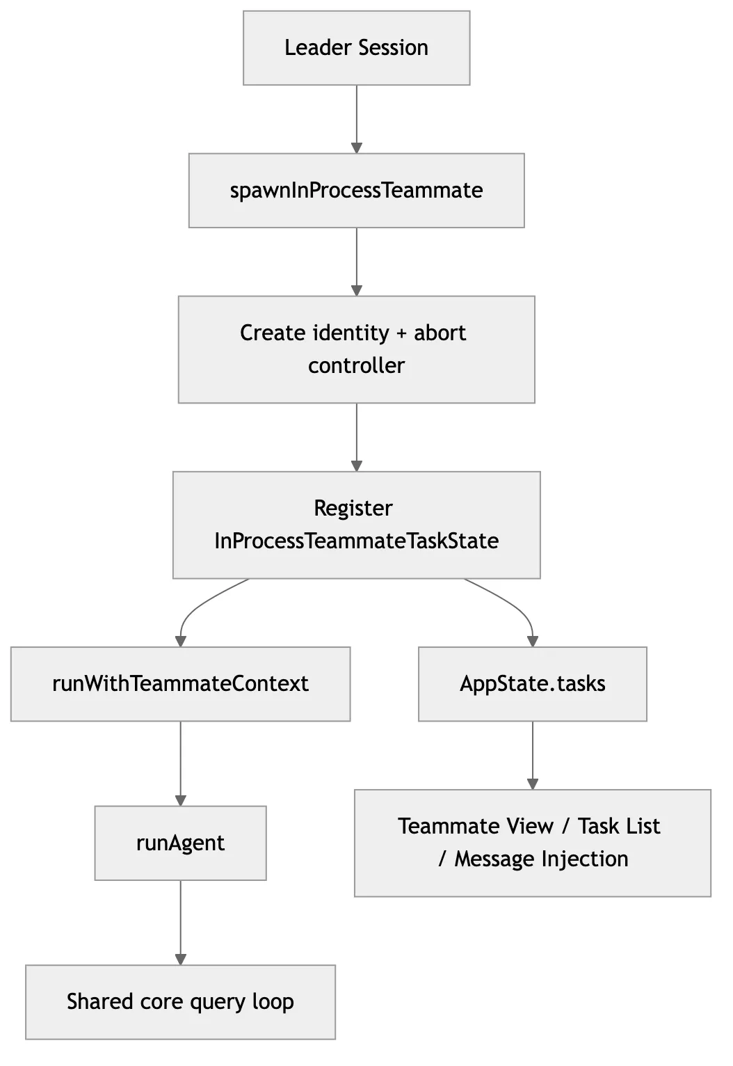 这一步很重要,因为它意味着 teammate 不是 runAgent 的一个参数,而是一个在系统里真实存在、可被追踪的执行体。