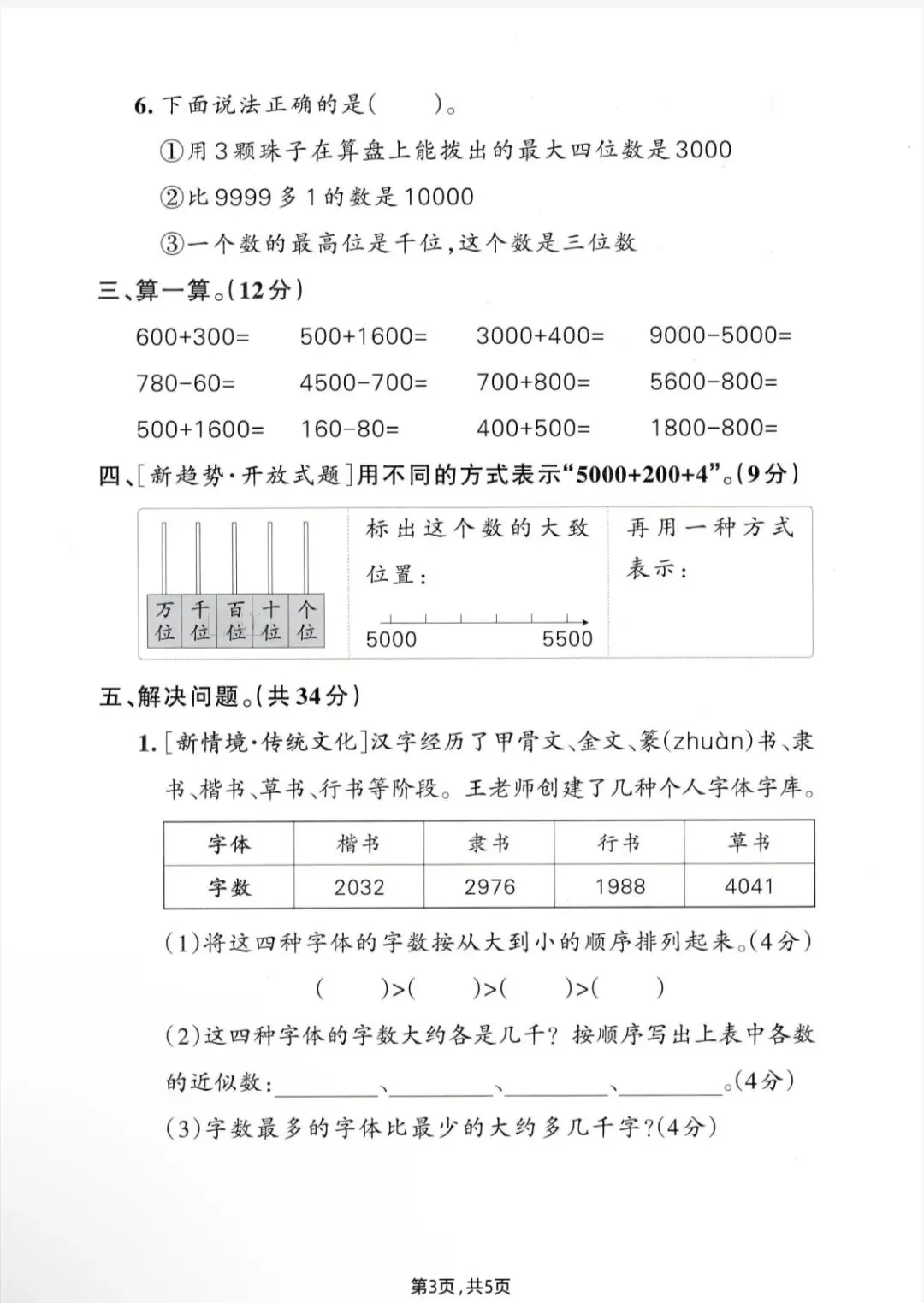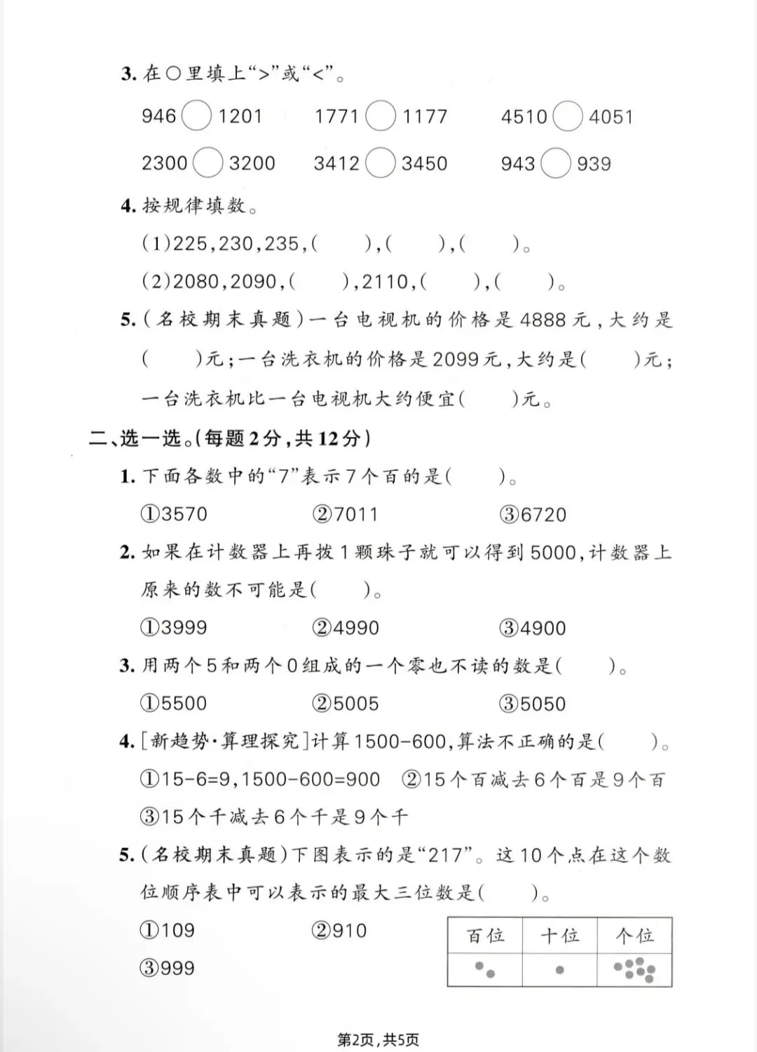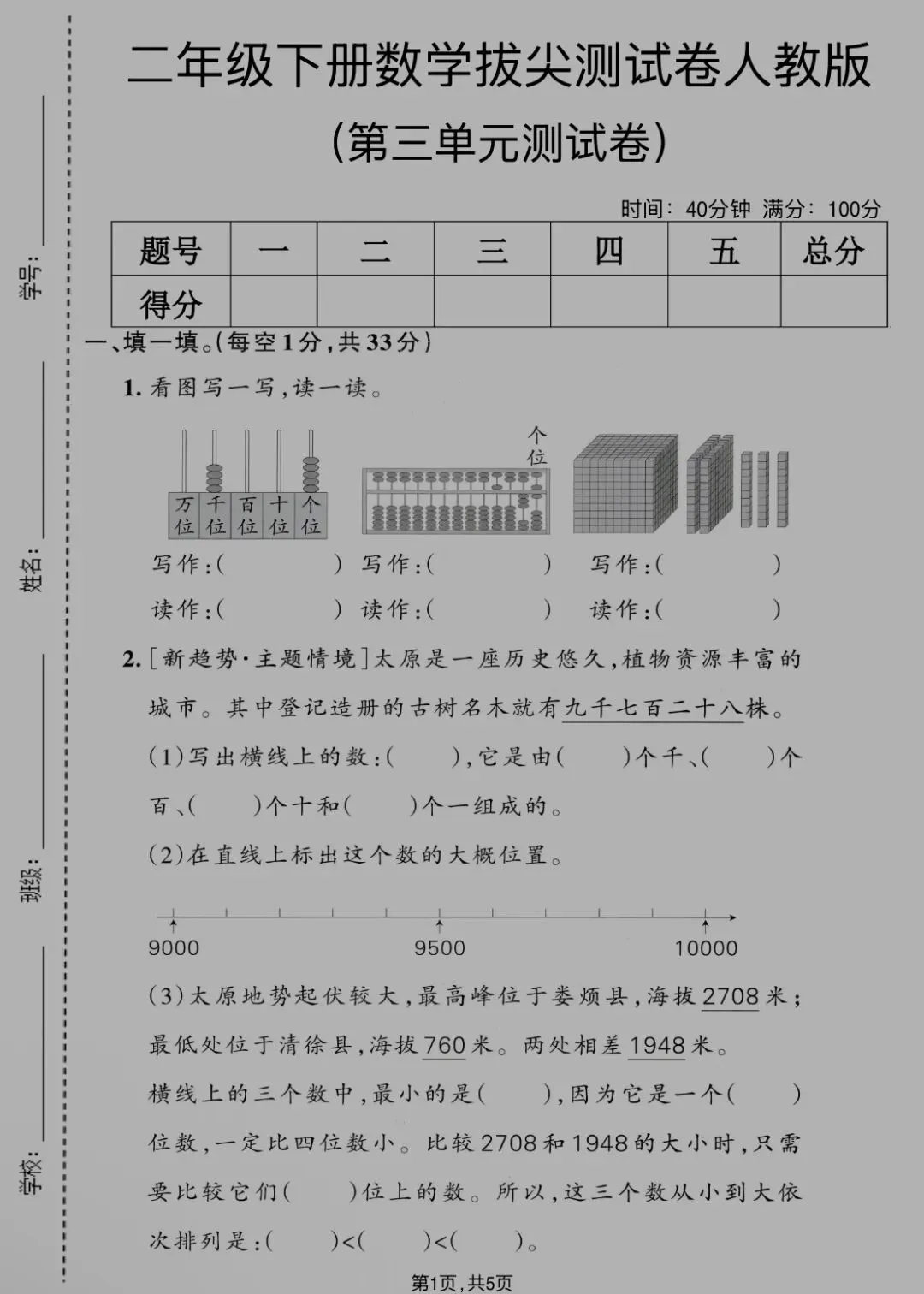 二年级下册第三单元检测,电子版,直接打印