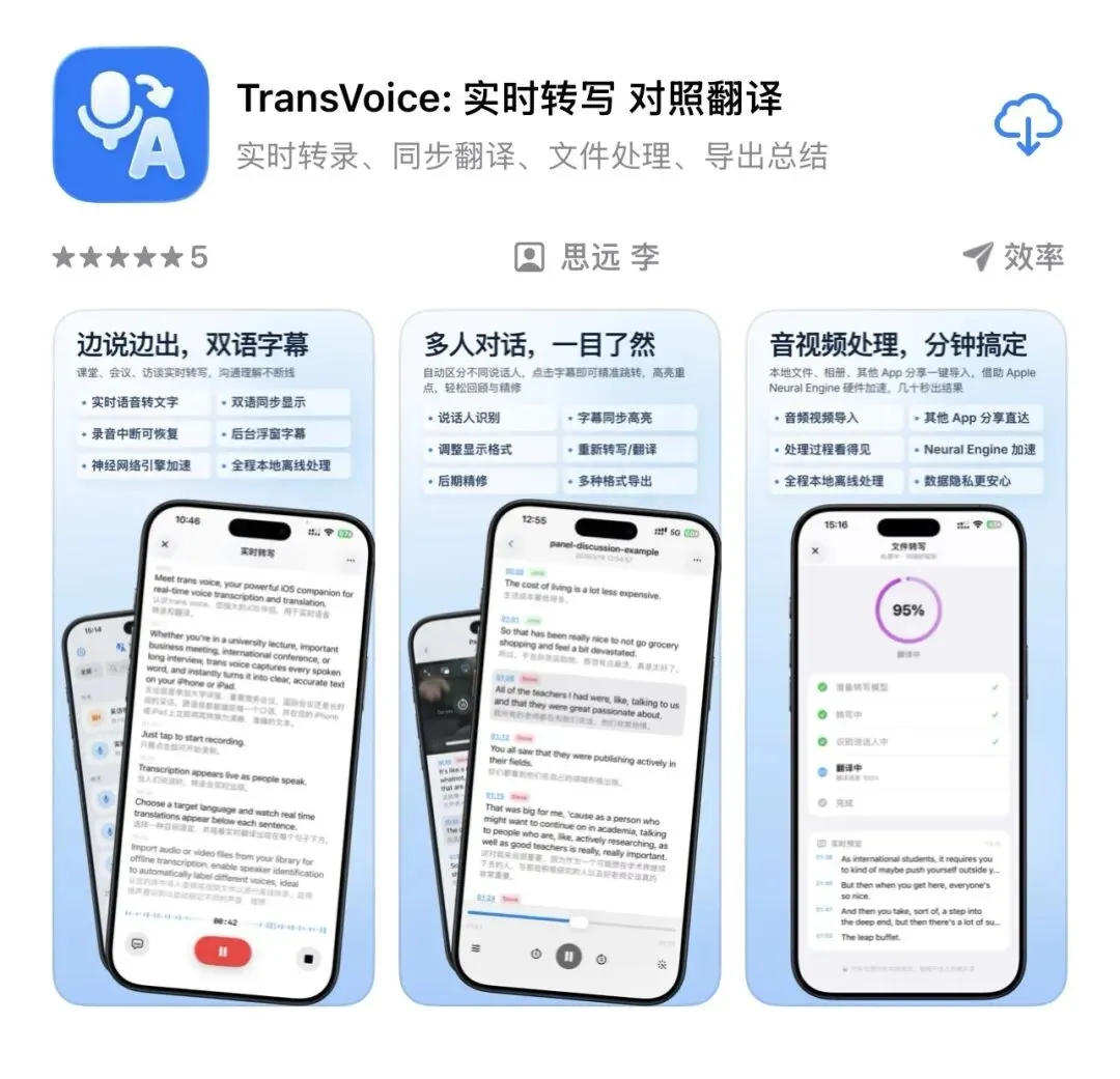我做了一款 iOS App – TransVoice,经过两个月开发,正式在 App Store 上架啦🎉文末有会员福利送给大家❤️