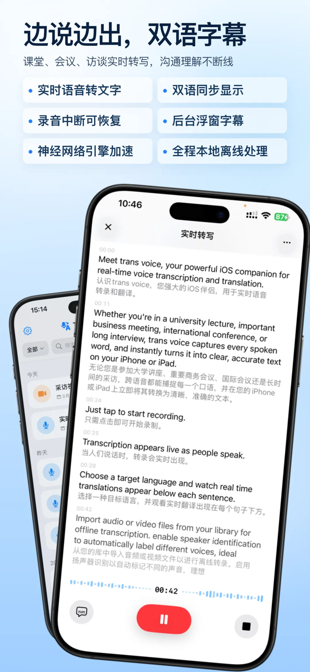 TransVoice 现在可以在 App Store 免费下载,支持 iPhone、iPad和 Mac。