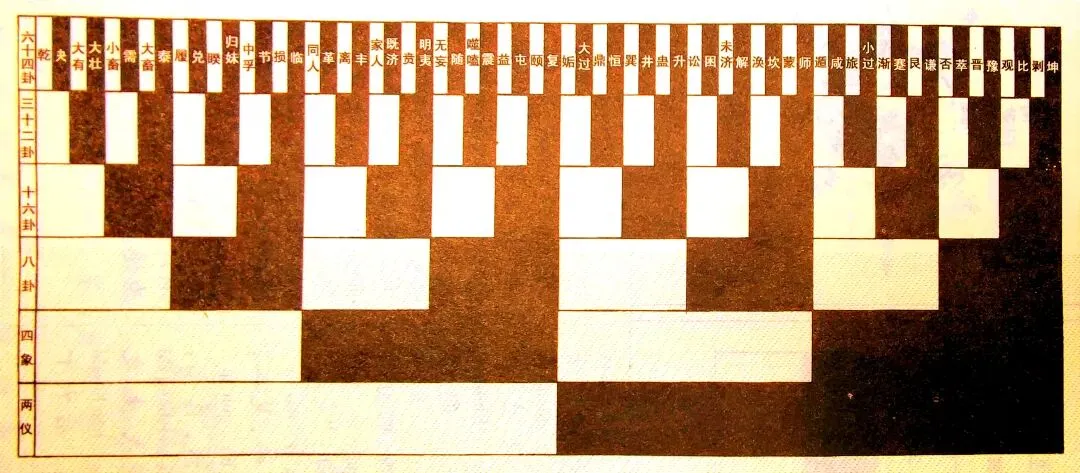 意思:如果按照逐爻逐渐生成(即邵雍的“加一倍法”理论),那种“八分为十六,十六分为三十二,三十二分为六十四”的过程,尤其能体现出 《易经》道理与自然界生长化育规律之间的精妙契合。