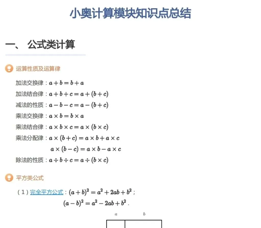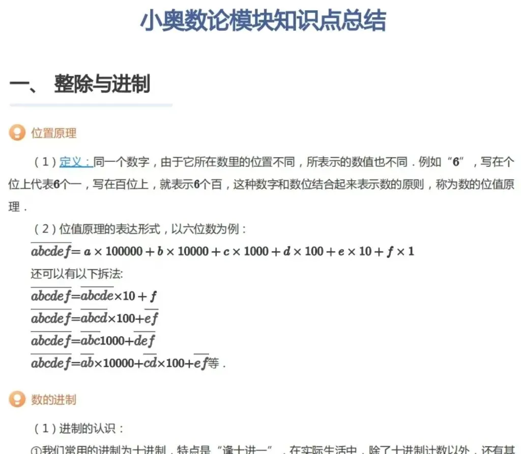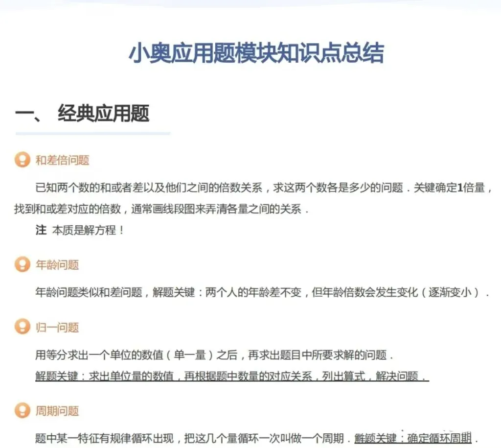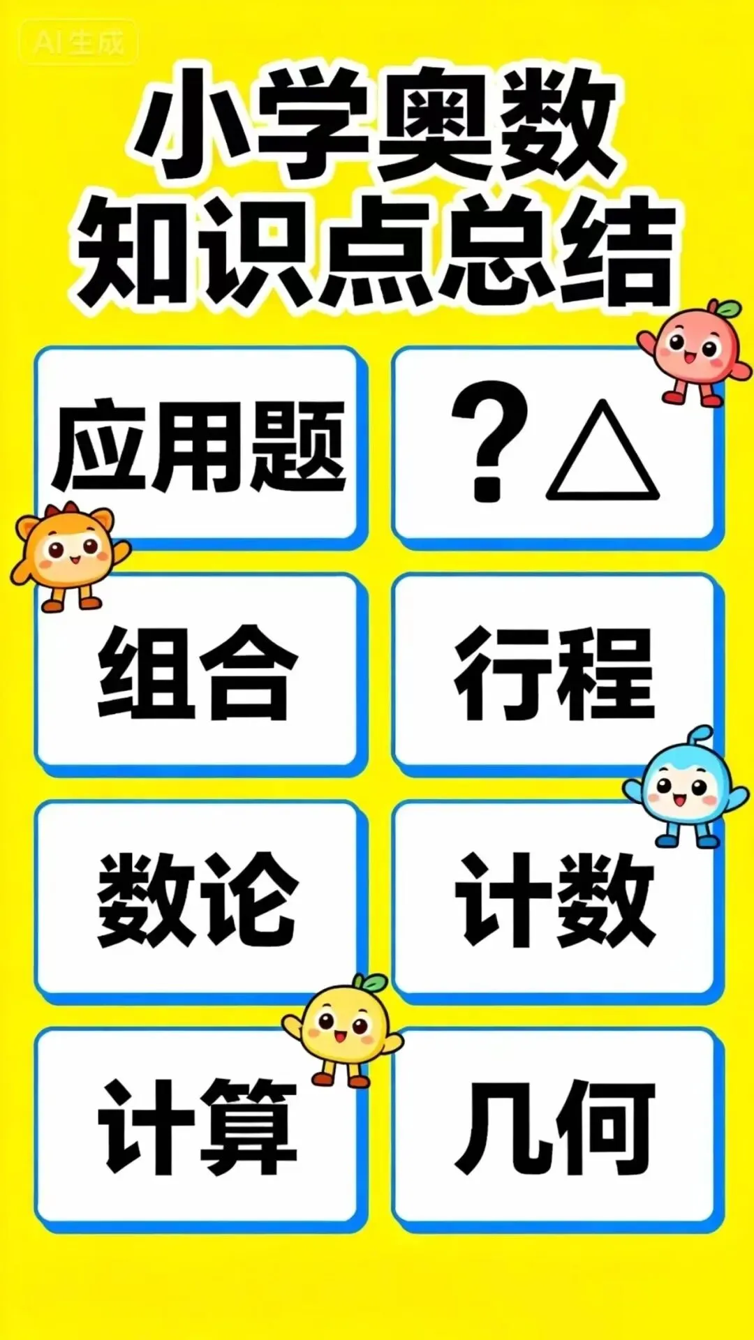 小学奥数知识点总结,PDF版,7个模块:几何,计数,计算,数论,行程,应用题,组合。