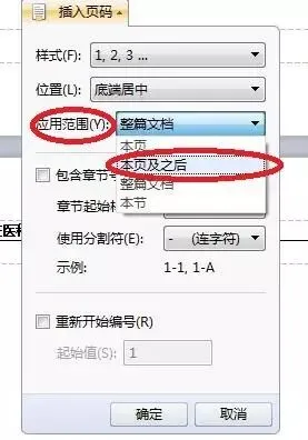 里面可以选择页码的样式、位置、应用范围,主要是「应用范围」。