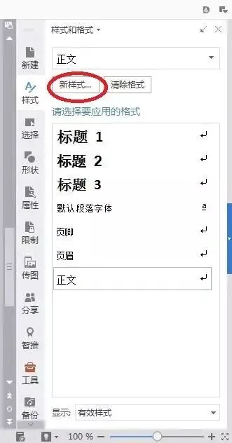 里面已经有设置好的几个格式,如果觉得不够,可以点击新样式,自己设置新的样式。