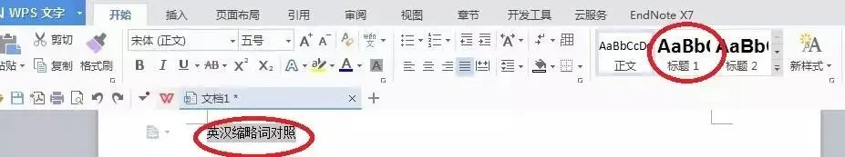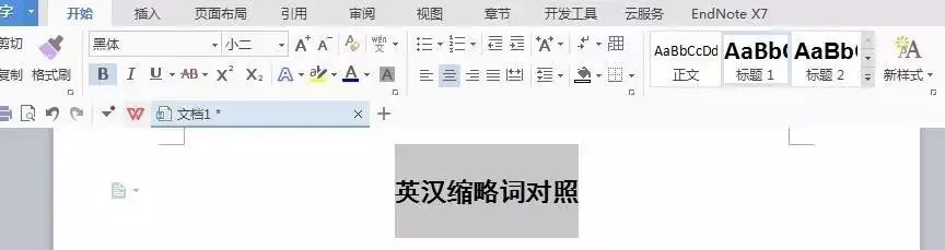 设定好所有的格式以后,就可以根据对每个部分不同的要求,比如说「英汉缩略词对照」、「论文题目」等需要的格式是黑体、小二号、居中,就可以选定标题,点击设定好的格式。