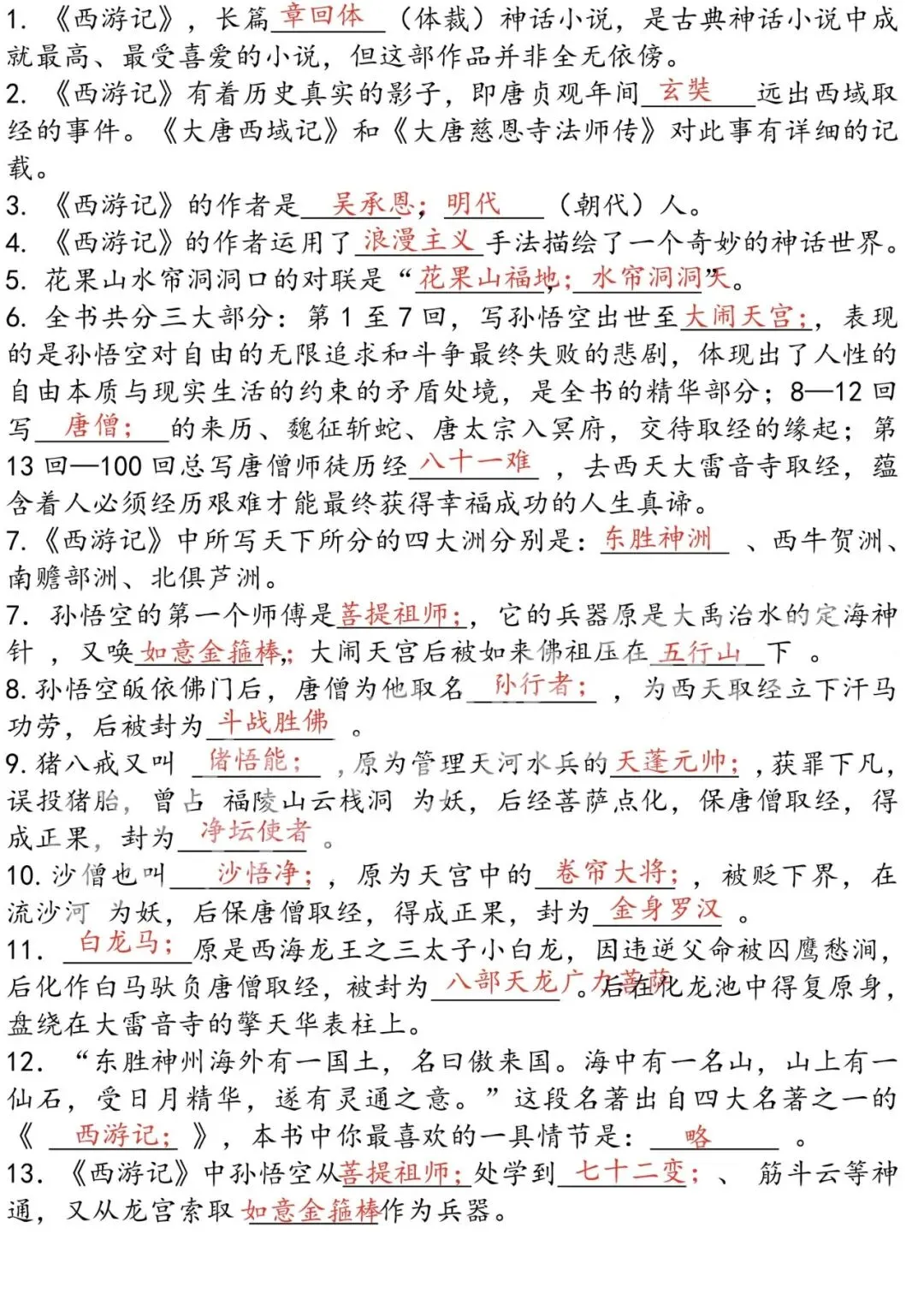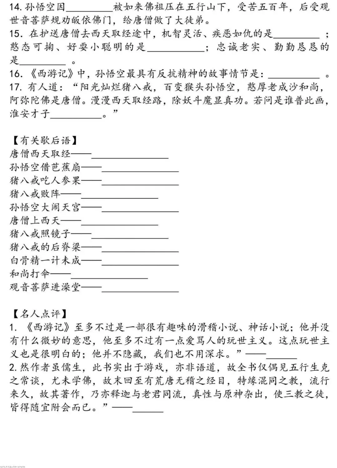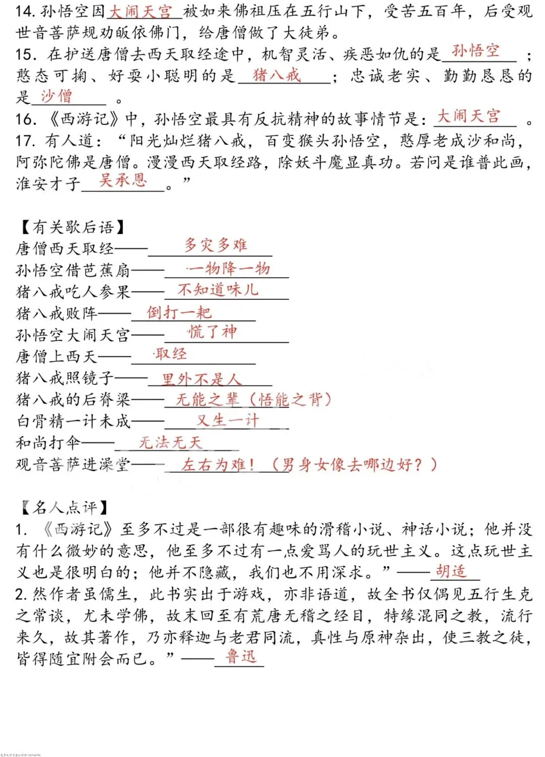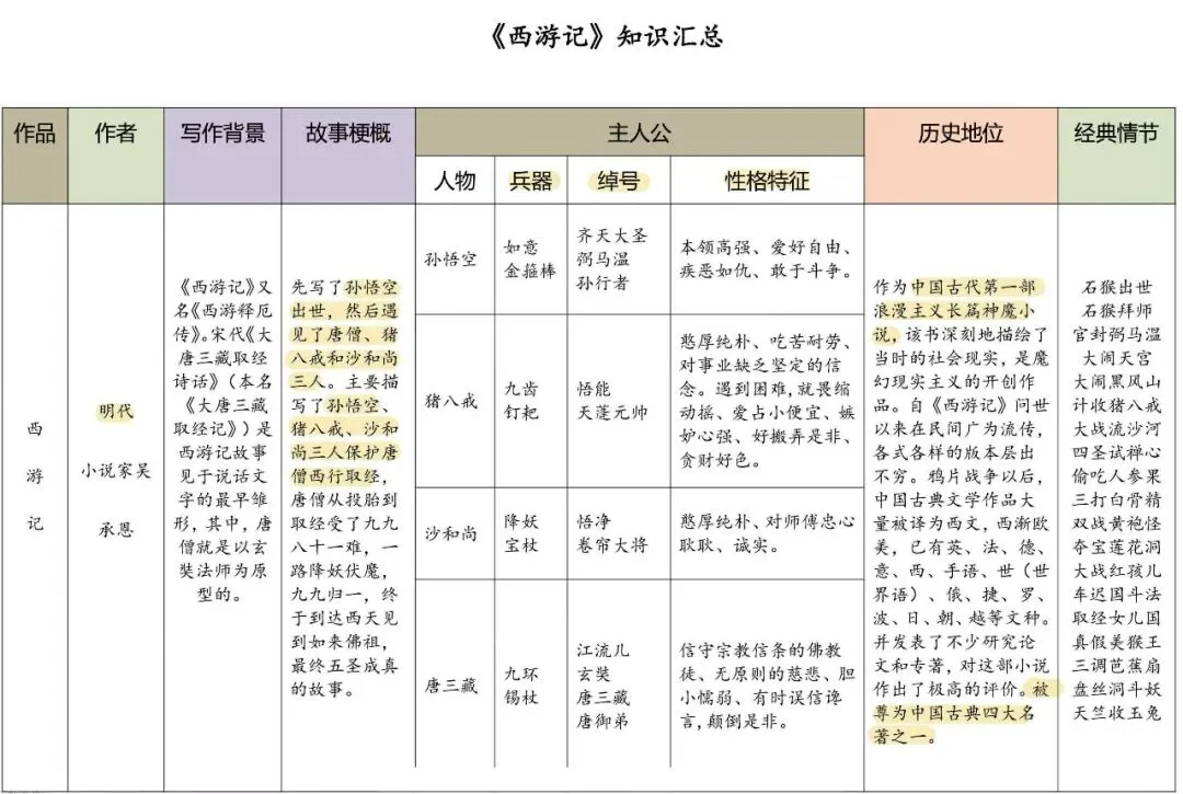四大名著之思维导图+考点汇总+习题(PDF版)可下载打印