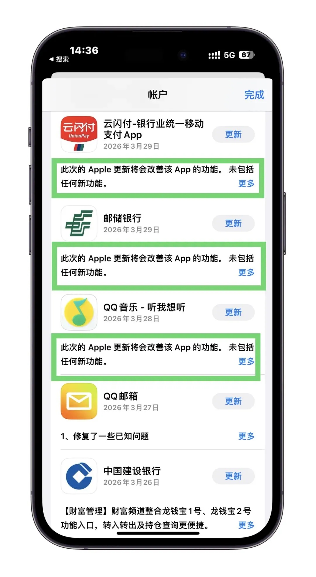 官方统一文案写着:此次的 Apple 更新将会改善该 App 的功能。未包括任何新功能。