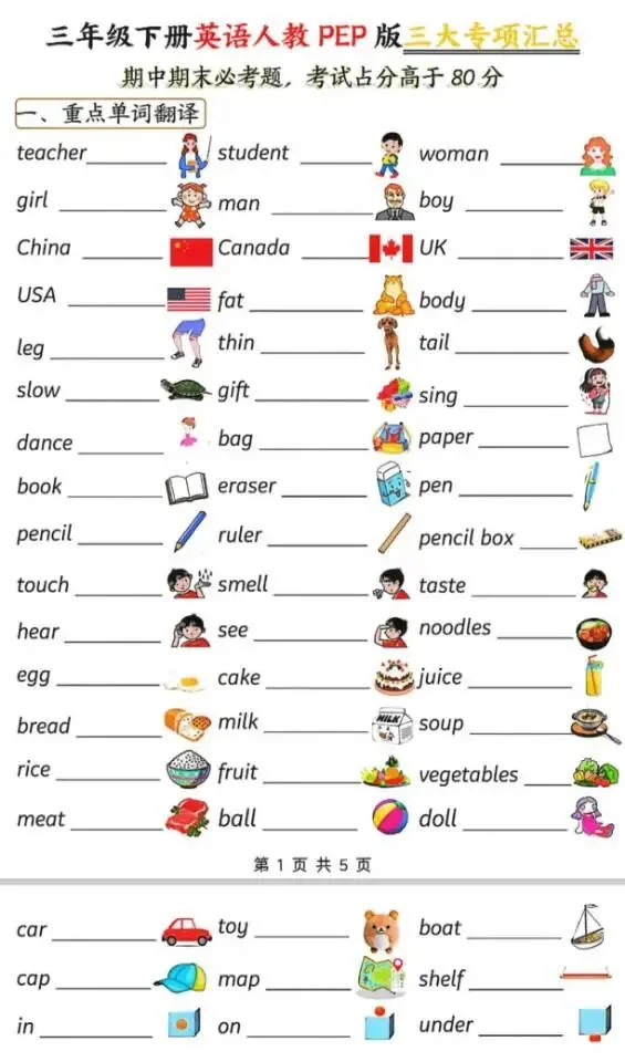 三年级下册英语人教pEp版三大专项汇总,电子版可打印