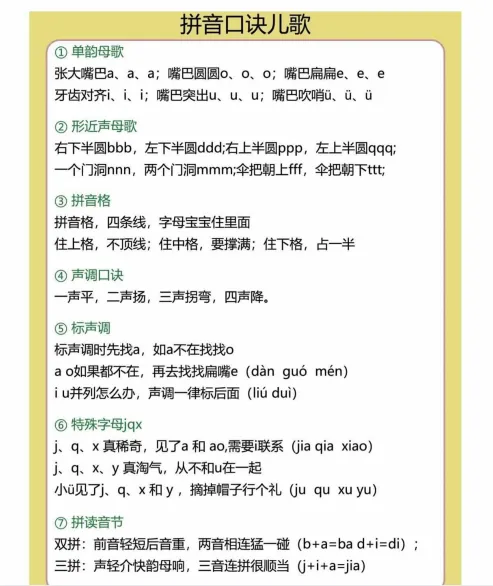 幼小衔接语文 拼音表 口诀儿歌/电子版可下载