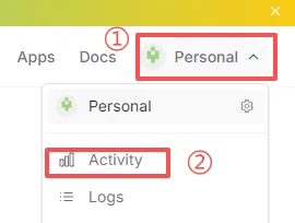 在网页右上角【个人(personal)】→选择【活动(activity)】