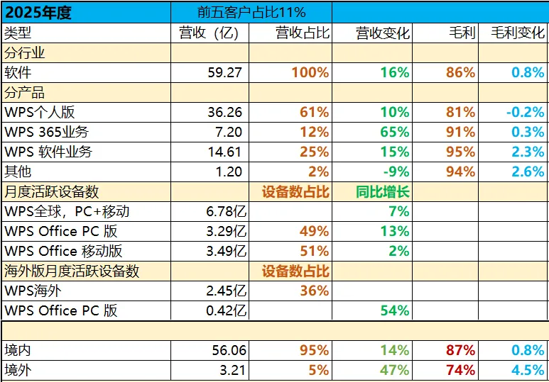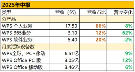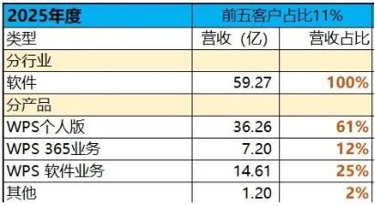 2025年WPS 个人版营收占比61%,同比增长10%;