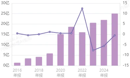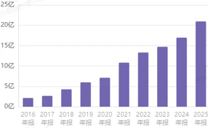 研发费每年持续增长中,2025年差不多是21亿左右;