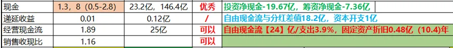 这公司就是账面钱多,除去借款还有146亿的纯现金存款在手上,现金流和销现比也很好,每年还有不停的现金流流入,真的是富得流油;