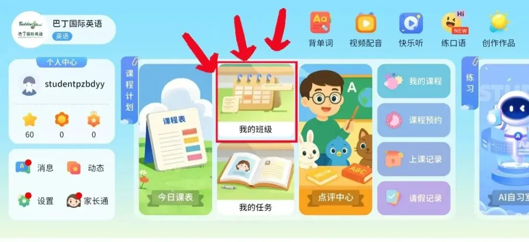 1. 操作便捷:后台邀请巴丁英语在读学员加入专属班级,即可在APP内获取与课堂同步的电子课本及各类拓展资源。