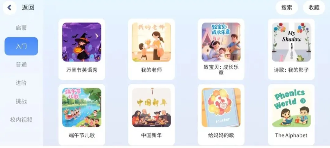 无论孩子处于什么年龄段,都能找到契合其年龄需求和兴趣的学习资源,助力小朋友们随时随地学习英语,通过多种形式鼓励他们开口表达。