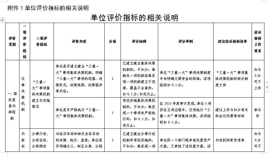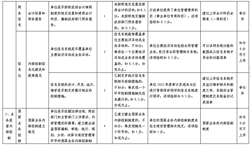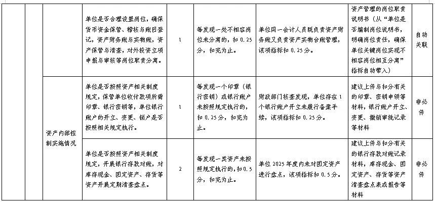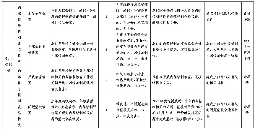 2025年单位内控评价指标的相关说明 单位评价指标的相关说明中明确了内控评价时上传佐证材料的要求,对于不得分和某些不扣分的评价指标是不强制要求上传佐证材料的。 相关链接:2025年度行政事业单位内部控制评价基本指标
