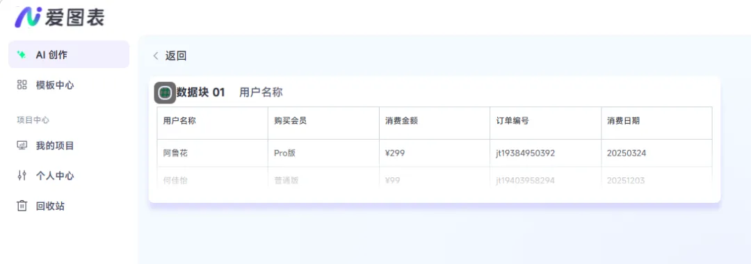 爱图表对数据块、字段维度和表格结构的识别都比较准确。
