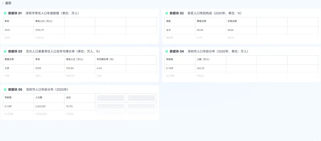 比如下面这张表格,是一张关于深圳人口的统计,但表格非常复杂,一个表格中又分成了七八块小表格。
