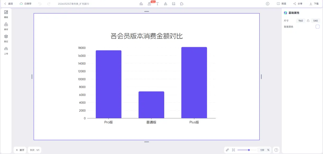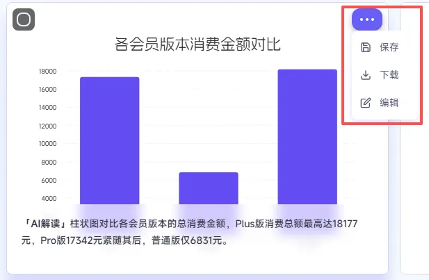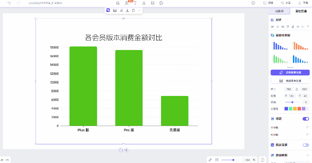 那我就可以选择第二个“各会员版本消费金额对比”这张图,放进我的汇报文档里。