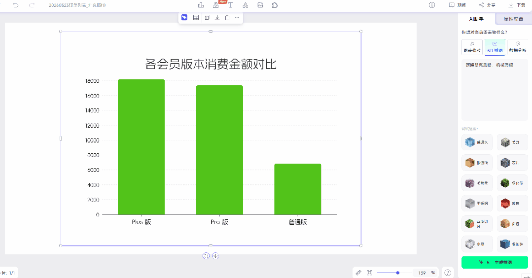 而爱图表AI生成已完全实现原子化编辑颗粒度,再小的细节也支持修改,你可以在这里随意修改你的图表数据、类型、图表、配色、样式等。