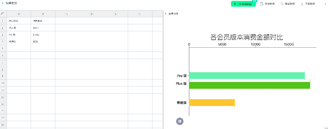 之后AI就会根据你的数据,识别出可以制作出哪种数据图表,并根据数据特征选择更合适的图表形式。