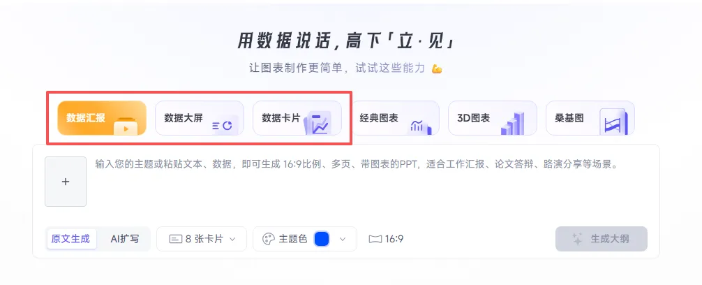 在创作页面,我们就能看到数据汇报、数据大屏和数据卡片这三种图文类型。