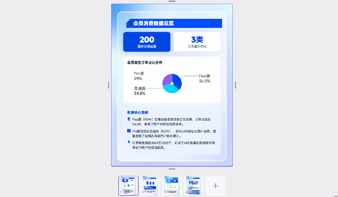 这其实就是PPT,只是是以数据汇报的形式呈现的。你可以选择具体生成多少页,然后将这几页数据汇报的PPT夹在你的正式PPT中。