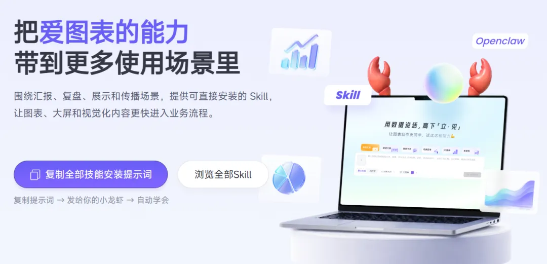 为了让这么便利的工具更融入大家的工作,爱图表还同时发布了专门的API、Agent和Skill。