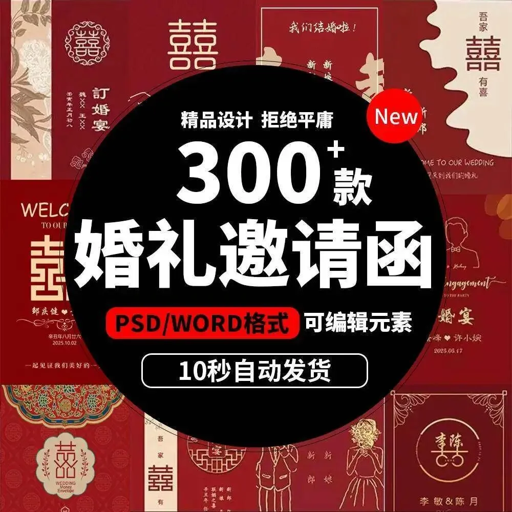 结婚筹备必备!这里有300款中式红色婚礼请柬电子版图片和模板,包括PSD和Word格式,适用于订婚宴、求婚庆典等场合。实用性强,免费获取,完整版打包,网盘下载无套路。有需要的朋友快来保存吧!
