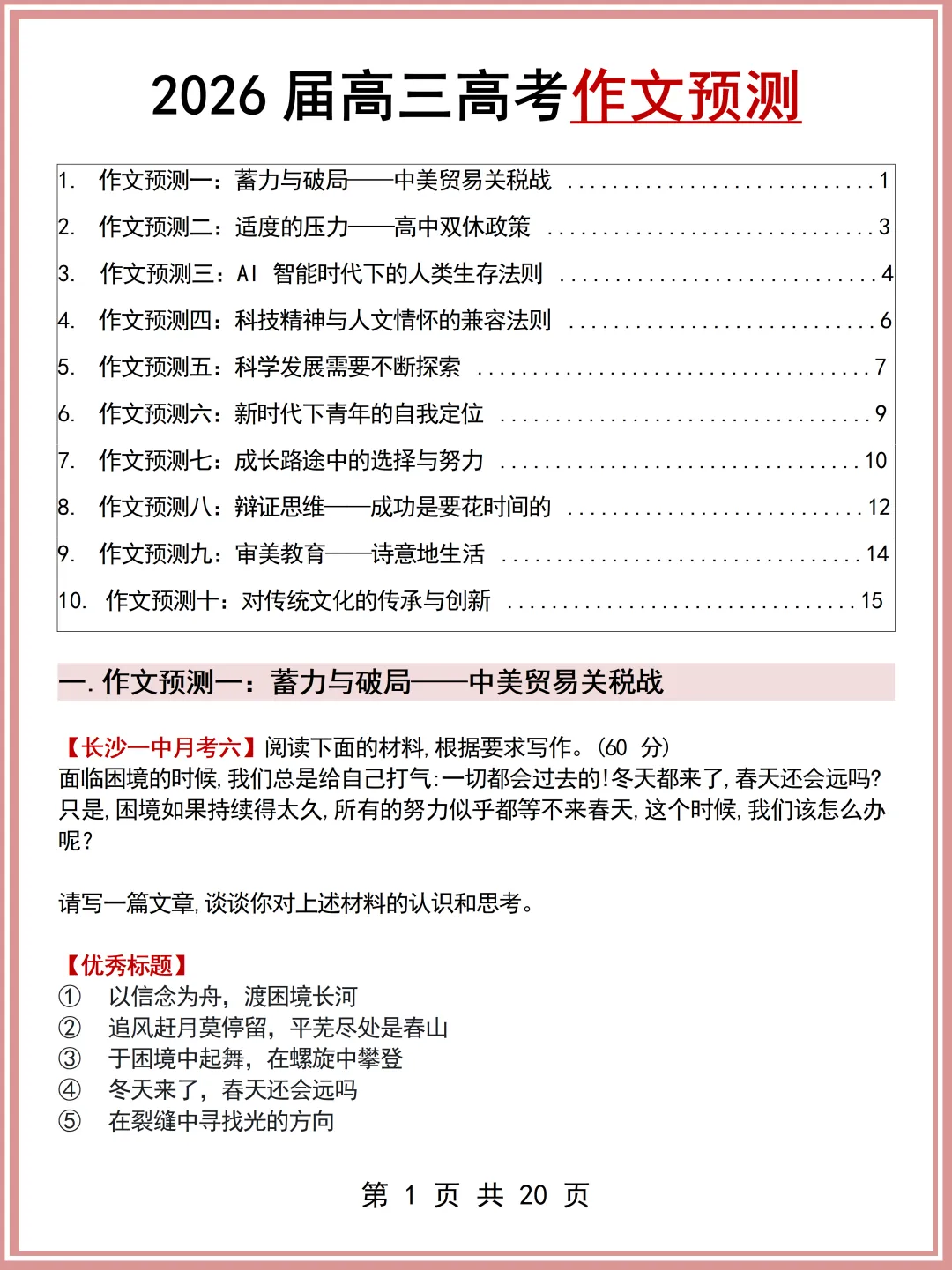2026最新版:高三高考作文预测(可打印)还不快看!