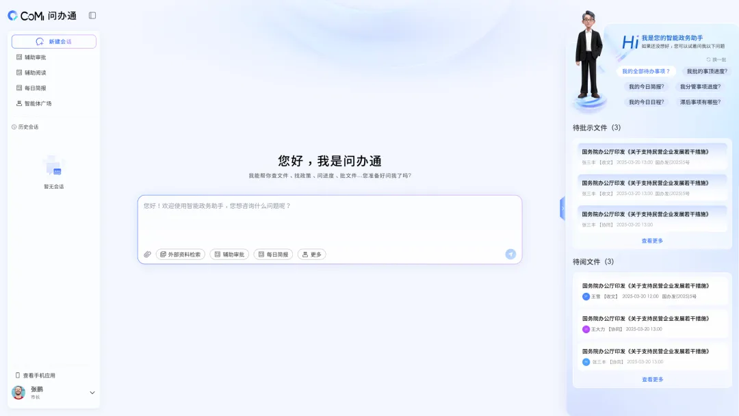 2025年,致远互联携手中央党校(国家行政学院)汪玉凯教授团队开展“人工智能+数字机关”课题研究,采集了大量的智能机关应用样本。结合课题调研成果,基于CoMi智能平台结合高质量数据集,与大量成功用户实践积累,致远互联自主研发了更懂数智机关的一站式AI助手“问办通”。