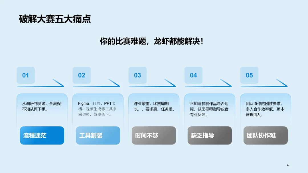 UXDA大赛赛程长、任务重、要求高,很多同学会遇到流程不熟悉、分工难、时间不够、缺乏指导等问题,而小龙虾就能精准破解这些痛点,成为你的“备赛搭子”