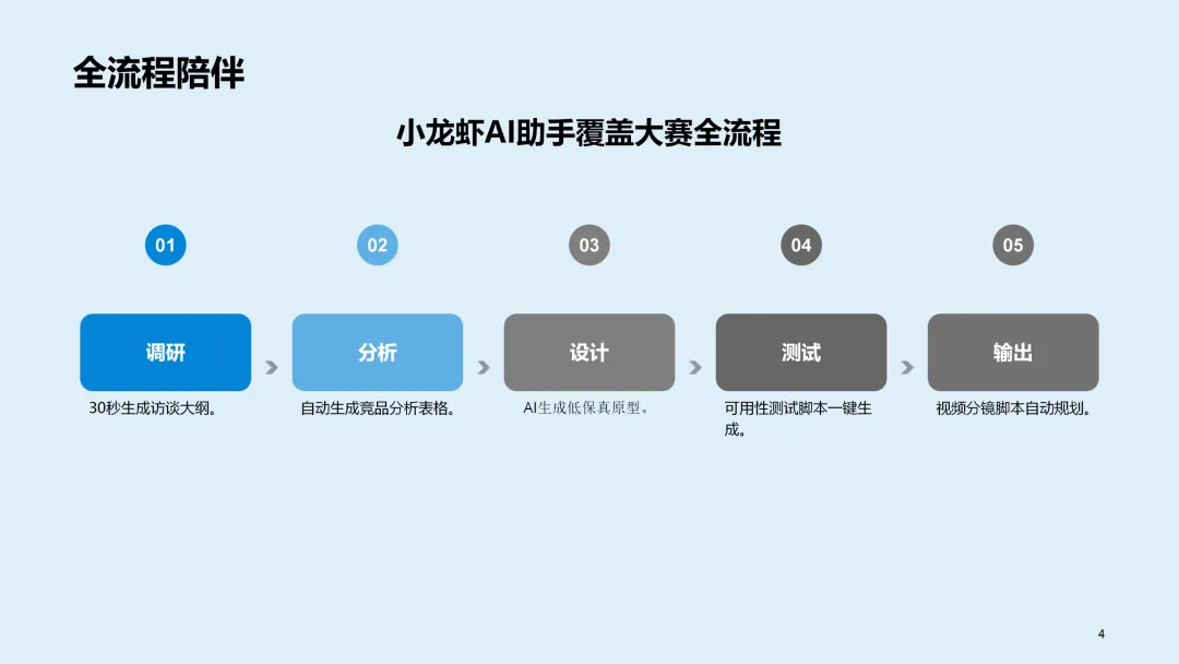 • 流程指导:不懂用户体验设计、智能体设计流程?小龙虾可以当你的专属导师,随时咨询流程细节,还能辅助完成调研、分析、设计、测试、输出全流程;