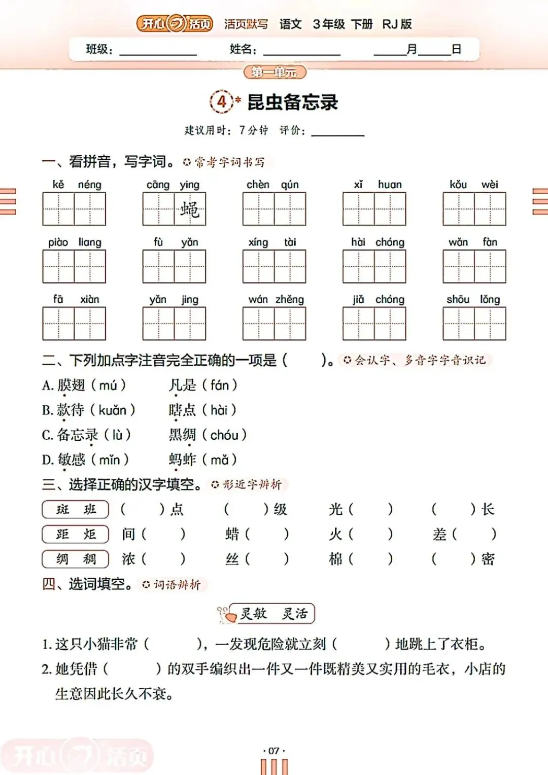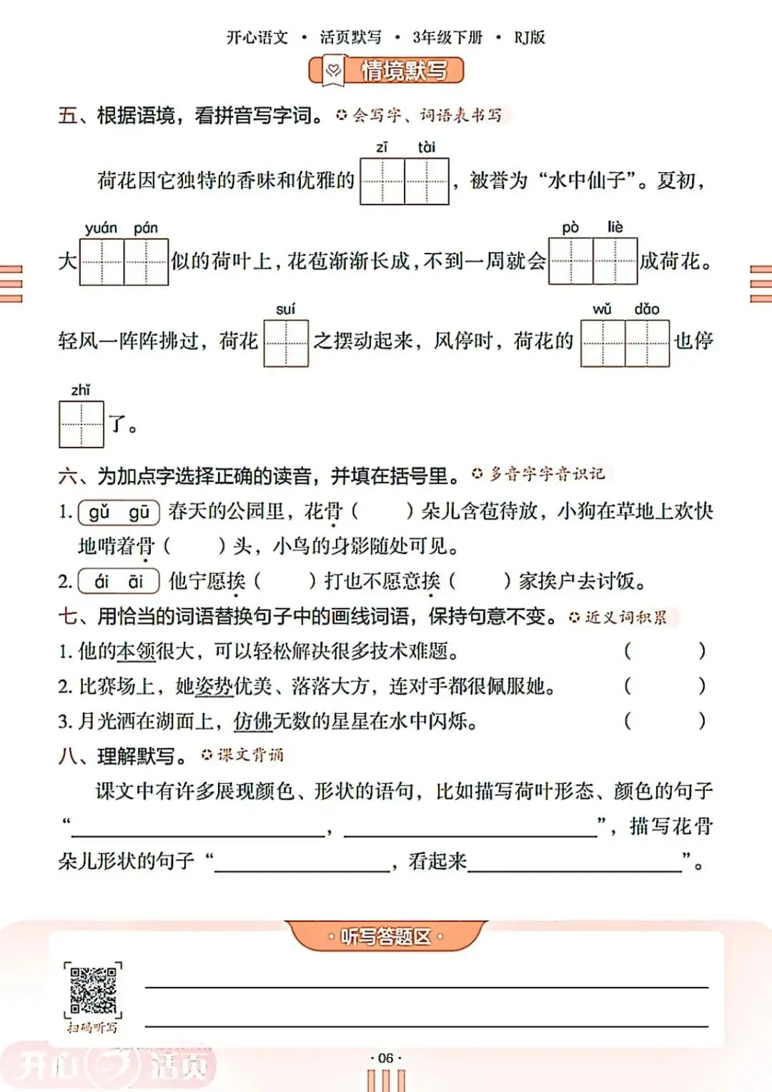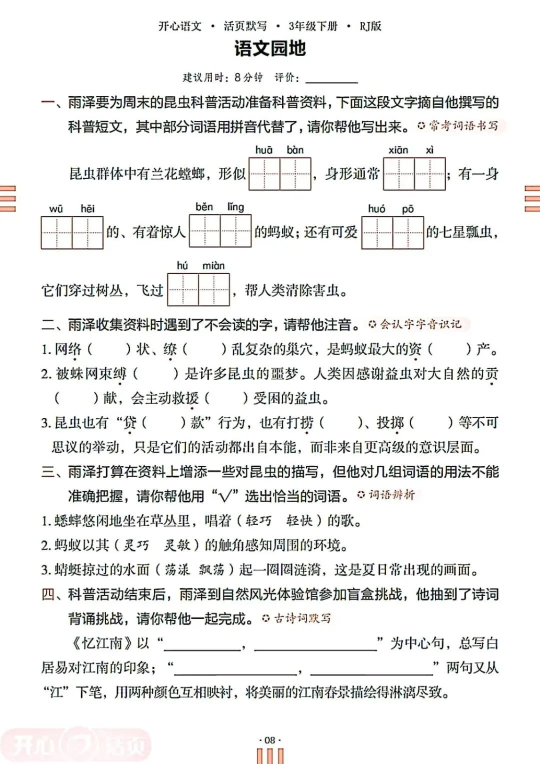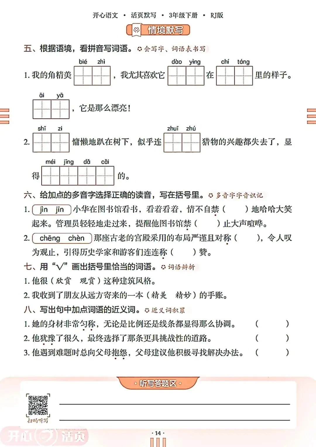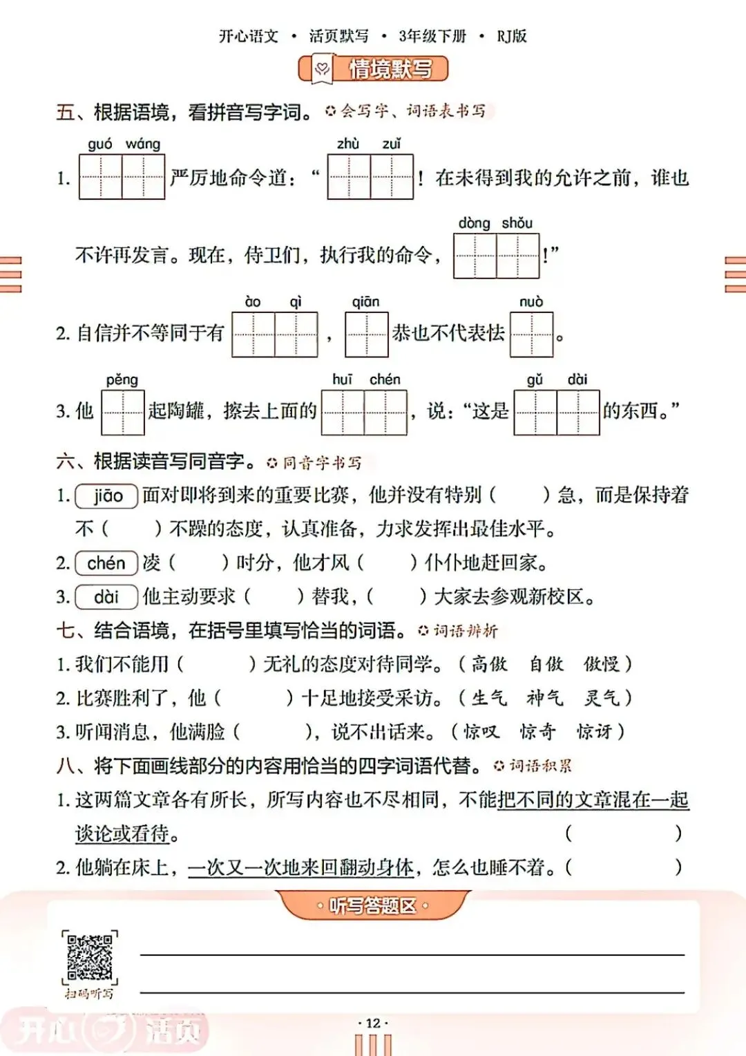 3年级下册语文《开心活页默写》(领高清PDF打印版)